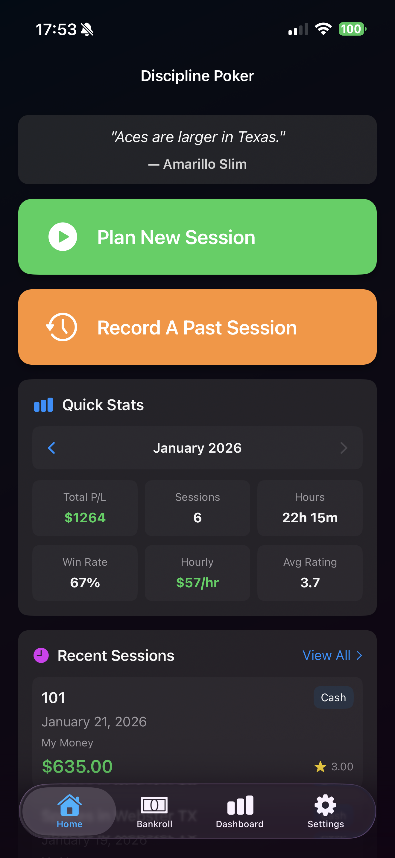 Track sessions, manage your bankroll, and improve your game with structured self-review. The poker companion that helps you play your best.